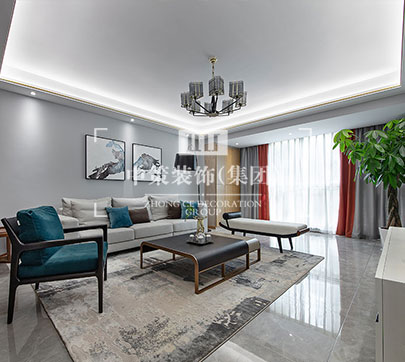 本案设计师将唐朝诗人王勃的“ 落霞与孤鹜齐飞,秋水共长天一色”一诗融入客厅之中。抹去了传统客厅电视,选用了一幅颇具朦胧美的山水人文画作。浓郁的书香气息突显温润质感,让整个空间的氛围充满了文艺气质的格调。