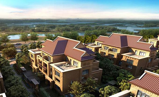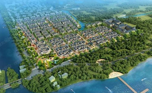 该项目为法兰西风格的小镇规划和情景设计,一期工程以花园洋房、联排别墅、独立别墅等具有法式风格的建筑为主,依据流水、道路、坡地、森林等