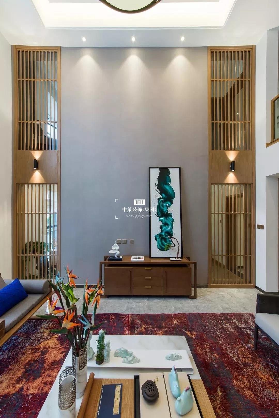 本案例为四居室,建筑面积192平米。新中式风格:中国风的构成主要体现在传统家具装饰品及黑、红为